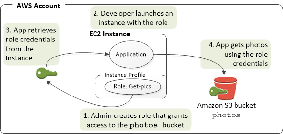 {”Sid”:”ListEc2AndListInstanceProfiles”,”Effect”:”Allow”,”Action”:[“iam:ListInstanceProfiles”,”ec2:Describe*,”ec2:Search*,”ec2:Get*”],”Resource”:”*”}]} {“Verson”:”2012-10-17″,”Statement”:[{“Effect”:”Allow”,”Action”,”ec2: RunInstances”,”Resources”:”*”},{“Effect”:”Allow”,”Action”:”iam:PassRole”,”Resource”:”arn:aws:iam::account-id:role/Get-pics”}]} permissions Policy to allow theapplication to access the my-bucket-1 Amazon S3 bucket: Account 111111111111 abcd Role Permissions Policy {“Version”:”2012-10-17″,”Statement”:[{“Sid”:”AllowAccountLevelS3Actions”,”Effect”:”Allow”,”Action”:[“s3: GetBucketLocation”,”s3: GetAccountPublicAccessBlock “,”s3:ListAccessPoints”,”ListAllMyBuckets”],”Resource”:”arn:aws:s,3:::*”},{“Sid”:”AllowListAndReadS3ActionOnMyBucket”,”Effect”:”Allow”,”Action”:[“s3:Get*”,”s3:List*”],”Resource”:[“arn:aws:s3:::my-bucket-1/*”,”arn:aws:s3:::my-bucket-1″]},{“Sid”:”AllowIPToAssumeCrossAccountRole”,”Effect”:”Allow”,”Action”:”sts:AssumeRole”,”Resource”:”arn:aws:iam::222222222222:role/efgh”}]} Account 111111111111 abcd Role Trust Policy {“Version”:”2012-10-17″,”Statement”:[{“Sid”:”abcdTrustPolicy”,”Effect”:”Allow”,”Action”:”sts”:AssumeRole”,”Principal”:{“Service”:ec2.amazonaws.com”}]} https://capital.one/UtPvEz