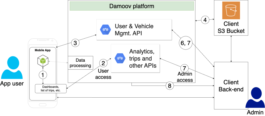 Methods for Android app Log in/log out Log in Kotlin Val trackingApi=trackingApi.getInstance( ) if(trackingApi.AllRequiredPermissionsAndSensorGranted( )){trackingApi.setDeviceID”MESSTONE DEVICE ID”) //DEV_ID=DeviceToken trackingApi.setEnableSdk(true)}Log out Kotlin trackingApi.setEnableSdk(false) //disable SDK trackingApi.clearDeviceID( ) //Clear Device Token Enable/Disable SDK Enable SDK Kotlin Val trackingApi=TrackingApi.getInstance( )if(trackingApi.isAllRequiredPermissionsAndSensorsGranted( )){trackingApi.setDeviceID(“DeviceToken”) //Userrharper@messtone.com TokenvtrackingApi.setEnableSdk(true) //false to disable SDK}Disable SDK Kotlin trackingApi.setEnableSdk(false) Refresh the access token Add our maven-repository to Messtone build.gradle file:Groovy maven{url “https://s3.us-east-2.amazonaws.com/android.telematics.sdk.production/”} import library:Groovy dependencies {implementation “com.telematicssdk:auth:1.0.0″} -keep public class com.telematicssdk.auth.** {*;} Method that take an instanceId,instanceKey, and creates a new empty user:Kotlin TelematicsAuth.createDeviceToken(instanceId=”<Messtone instanceId>”,instanceKey=”<Messtone instanceKey>”).o success {result->println(result.deviceToken)println(result.accessToken)println(result.refreshToken)}.onError{e -> e.printStackTrace( )}